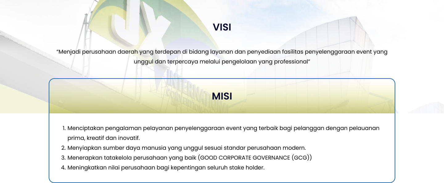 Jatim Expo is the largest convention hall without pillars in East Java Province that has been established since 2007. Under PT Wira Jatim Expo Building, Jatim Expo is one of the subsidiaries of PT Panca Wira Usaha (Wira Jatim Group) which is a Regional Owned Enterprise (BUMD) East Java Province.